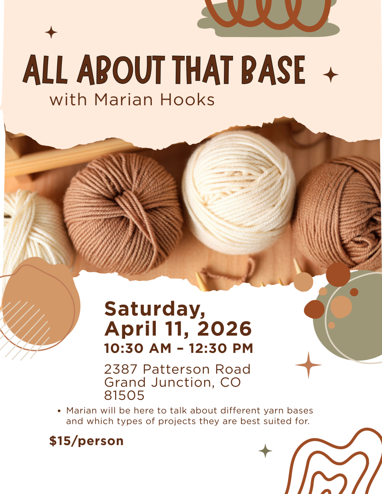 Marian will be here to talk about different yarn bases and which types of projects they are best suited for.